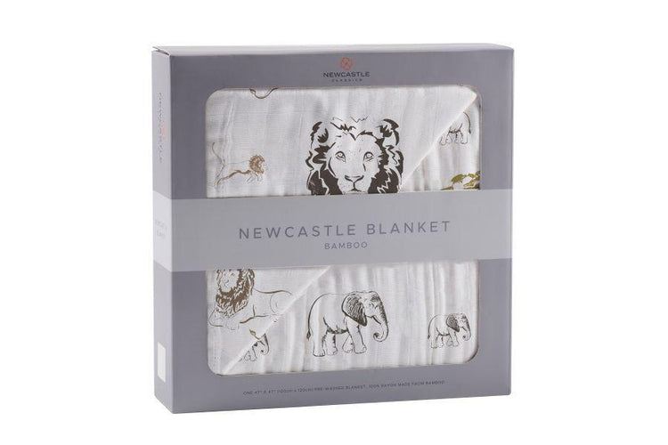 Hear Me Roar Lion and Rhinos and Elephants Bamboo Newcastle Blanket
