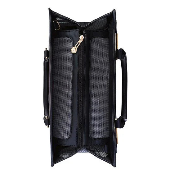 Key details like gold-tone hardware, smooth zippers, and structured sides add a luxury pet carrier feel, ensuring it stands out from ordinary travel bags.