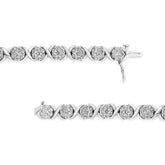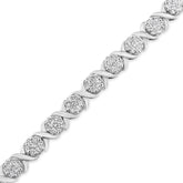 Elegant and timeless, this gorgeous 14K white gold tennis bracelet features alternating links with round clusters of brilliant cut diamonds and X shaped links. The tennis bracelet closes with a box clasp with foldover figure eight safety clip for safe and secure wear all day long. This authentic design is crafted of real 14 karat gold, a precious metal that will keep a tarnish-free shine for years to come. The bracelet comes in a choice of size and carat weights. This classic tennis bracelet makes a great gift for any special occasion, as well as a great gift for those with April birthdays! Whether worn for daytime glamour or evening sparkle, this bracelet is gorgeously versatile. Coordinate it with your favorite diamond earrings or other diamond jewelry to create a complete and elegant ensemble. It's a classic and feminine piece she'll want to show off every day.