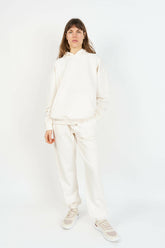 House Babylon’s oh-so-soft loungewear set is designed with comfort in mind, easy to dress up or down. The oversized loungewear set is made from 100% Turkish Cotton. It is a medium-weight fabric, clean cut from a soft touch French Terry and a finishing that provides extra softness. The hooded sweatshirt and pants feature a subtle screen-printed logo at the chest and thigh.