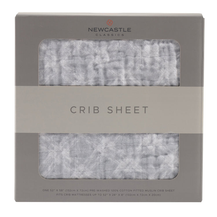 Glacier Grey Plaid Cotton Muslin Crib Sheet