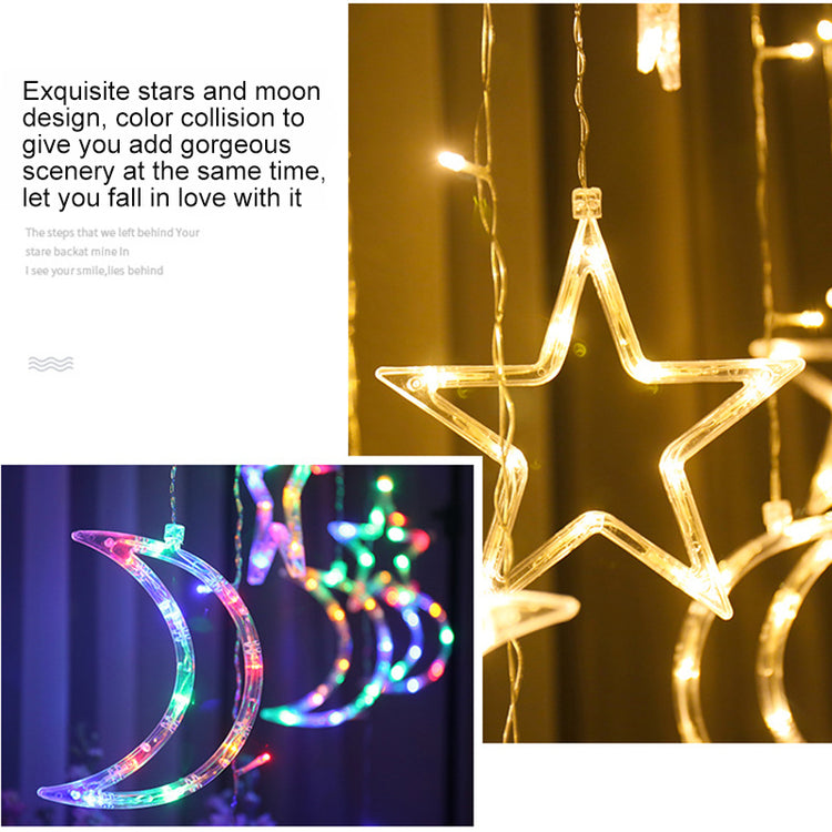 Star and moon shaped popular stylish string lights with plug in adaptor which easy to install and use, directly plug in and unplug it for power on and off.