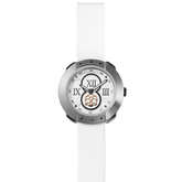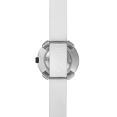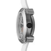 The Vista collection offers an elegant yet function focused timepiece featuring a brushed silver dial and petite 29mm case in stainless steel. The strap is fabricated in high-performance silicone in crisp white giving this model a fashion-forward appeal.