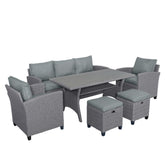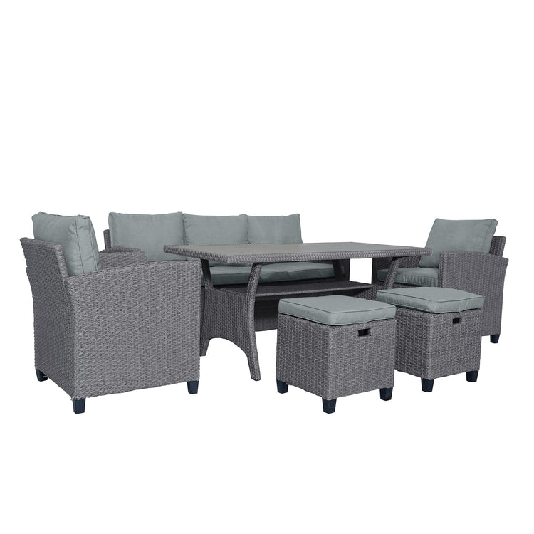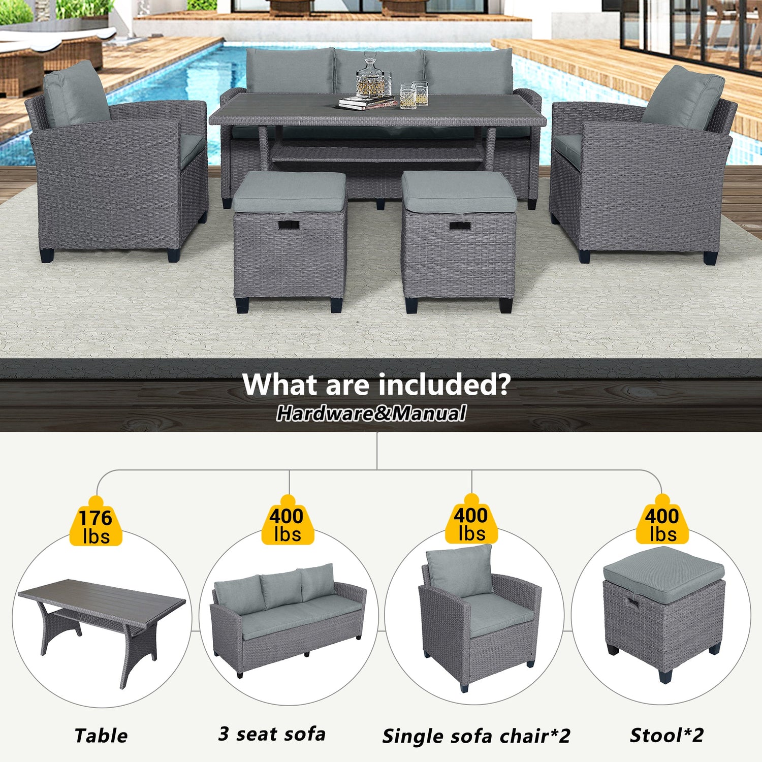 - [Enjoy Outdoor Time with Your Family] With two sofa chairs, one 3 seater sofa and two stools, this massive 6 piece set can comfortably seat 7 people while the spacious table is perfect for placing food, drinks, etc., making this set the perfect match for anyone who wants to transform their outdoor space.