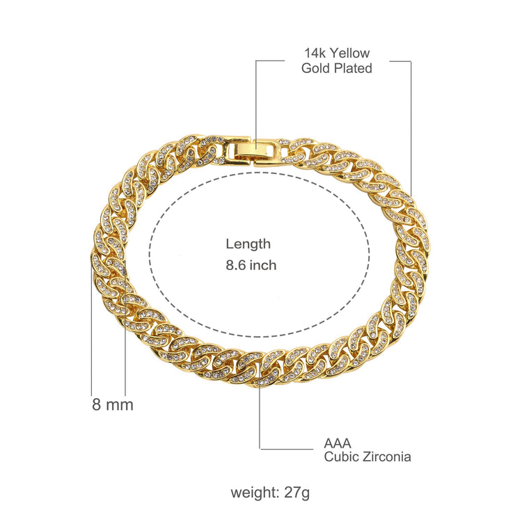 CREW cuban bracelet is a meticulously crafted solid cuban link which is fully iced out and studded with flawless rhinestone crystals set to precision. Wear it on a night out of town or on a plain T-Shirt just out and about. Wear it with confidence