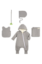 Super soft and cozy fleeced lined jumpsuit includes an attachable bib. Perfect for fall and winter.